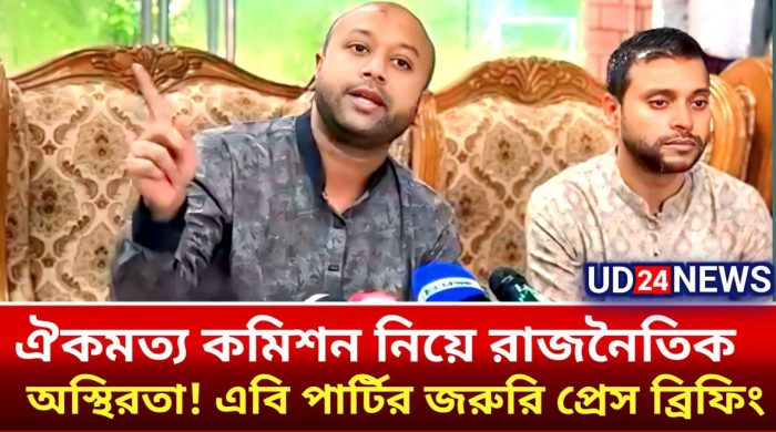 উপশিরোনাম: জরুরি প্রেস ব্রিফিংয়ে দেশের চলমান রাজনৈতিক অচলাবস্থা নিরসনে দলমত নির্বিশেষে গ্রহণযোগ্য ব্যক্তিদের নিয়ে জাতীয় ঐকমত্য কমিশন গঠনের আহ্বান জানিয়েছে আমার বাংলাদেশ পার্টি (এবি পার্টি)। — নিজস্ব প্রতিবেদক, ঢাকা: